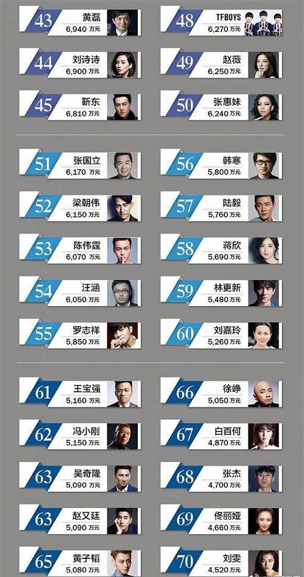 明星年收入太惊人!最少2千万,最高2.4亿,总额71亿
