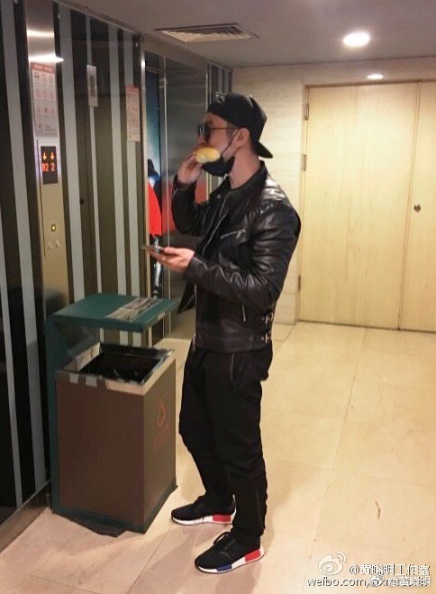黄晓明晒垃圾桶旁吃饭照 Baby喊话把垃圾桶还给我