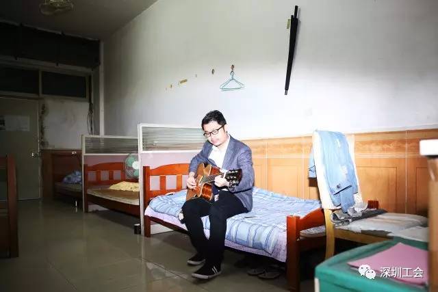 宿舍是五人间,害怕麻烦别人的他,专门和同事换了一间,这间只有几个午休的同事,晚上能肆意的练琴了。