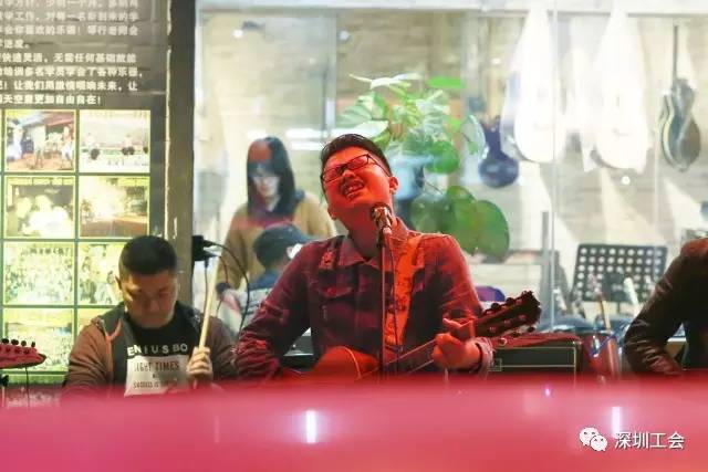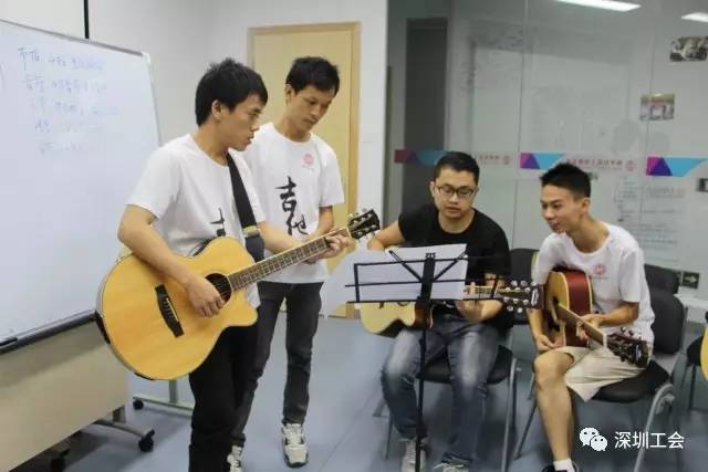每周一唱这样极具现场感染力的活动,让不少工人对吉他产生了浓厚的兴趣,浩南被和平社区工联会邀请做吉他老师,更多工人有了免费学习吉他的机会。