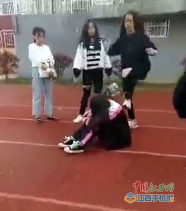 从8日开始,有网友爆料并配有视频称,丰城发生一起校园暴力事件,一女生被多名女同学暴打。记者从视频中看到,一名身穿校服的女生在操场上被多名女同学围住,其中一名身穿黑色衣服的女生不停掌掴、脚踹、辱骂被打者,另有两名女生不时也对被打者施暴。在整个打人过程中,被打女生一直在哭,但身边多名女生却哈哈大笑,并用手机进行拍摄,更有甚者提议“扒掉她的裤子”。在视频最后,被打者蹲坐在地上,黑衣女生又多次脚踏其背部,后又被两女生拽着头发在地上拖行,并逼迫其下跪道歉。