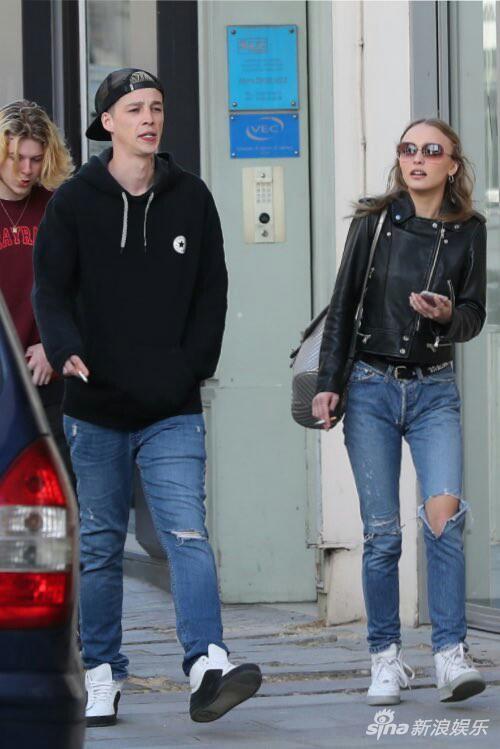 德普18岁女儿Lily-Rose Depp 曝光最新街拍,她手夹香烟,身穿黑色皮衣搭配破洞牛仔裤,“痞气”十足。