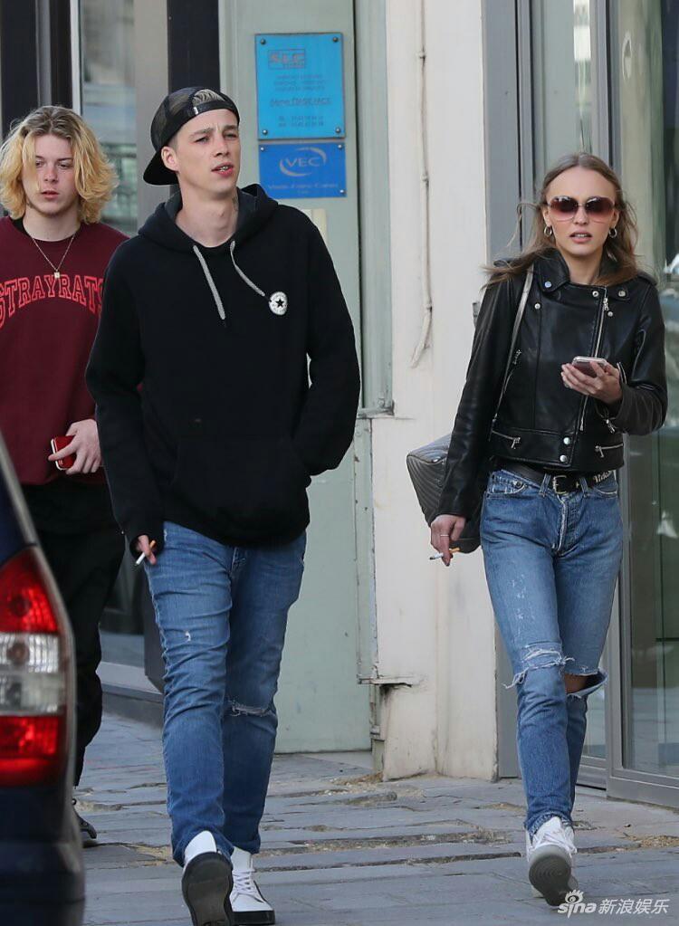 德普18岁女儿Lily-Rose Depp 曝光最新街拍,她手夹香烟,身穿黑色皮衣搭配破洞牛仔裤,“痞气”十足。