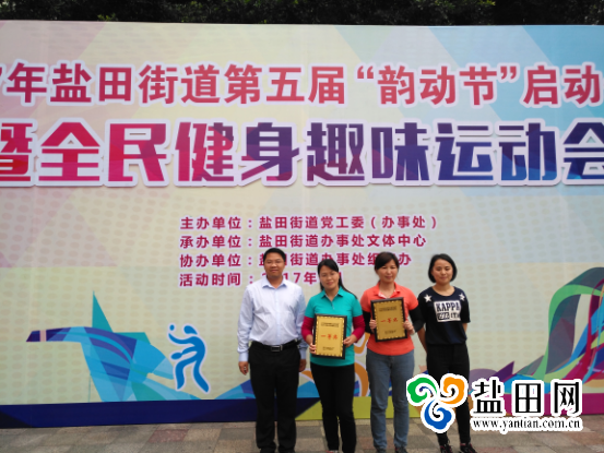 深圳新闻网盐田讯 (记者 陈蓉 通讯员 杨秀娥)4月13日下午,盐田街道第五届“韵动节”启动仪式暨全民健身趣味运动会在明珠文化广场成功举办。本次活动以“鼓劲综合提升攻坚行动,共享健康盐田美好生活”为主题,深入开展“两学一做”学习教育,以支部为单位,辖区公司及机关18个部门共300多名成员参加。盐田街道党工委书记、办事处主任赵世宽出席启动仪式并宣布开幕,盐田街道组宣办主任宋锦颂在运动会结束后为获奖单位颁奖。