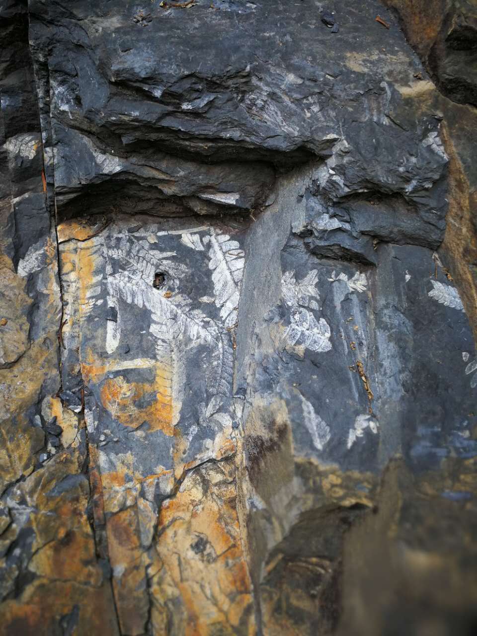沿着山径攀上山腰,一片片带有古植物化石图案的火山岩展现眼前。古化石的表面有旧有新。旧的颜色暗淡,图案模糊;新的黑白分明,图案清晰。段维指着一片图案清晰的石面告诉记者,原来附在其表面的岩层已经被盗采,仔细查看在岩石边缘可以找到凿撬留下的痕迹。记者现场观察,有三四处古化石表面图案清晰,周边可以看到盗采后留下的新石块。