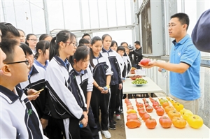 南澳中学学生在了解西红柿的起源和驯化历史。