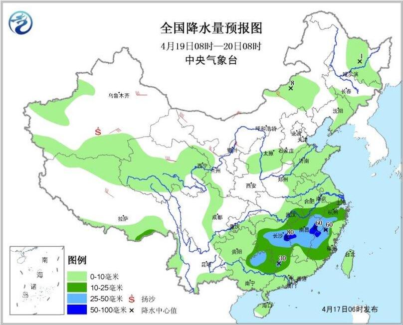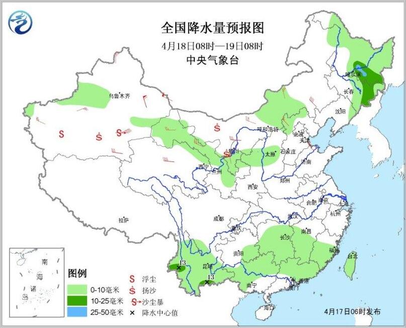 据中央气象台网站消息,17日至19日,新疆东部和南疆盆地、内蒙古中西部、西北地区中东部、华北西部和北部等地部分地区有扬沙或浮尘天气;17至18日,东北地区自南向北有小到中雨过程;19至20日,南方地区将有明显降雨。