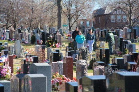 开平和新会这两大粤籍同乡会在新泽西耀荣坟场(Ewing Church Cemetery)的寿地比邻而设。按新会人赵文笙的说法:大都是上了六七十岁年纪的老者给先人迁坟。“他们说:‘不然我走了,在中国的墓就没人管了。迁过来,一家阴阳团聚,祭拜方便,也可常跟父母说说话,让他们地下有知。’”