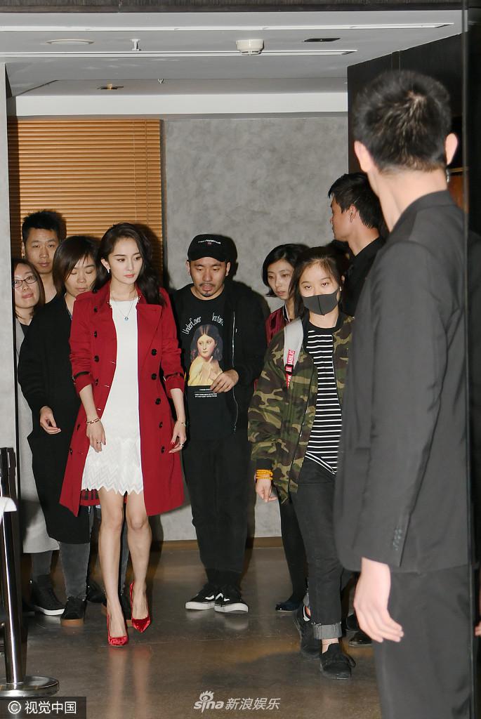 杨幂捞金秀美腿 穿红风衣获搀扶似娘娘出宫