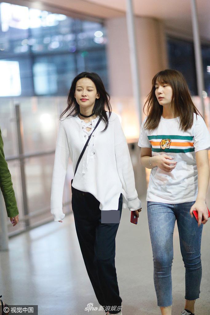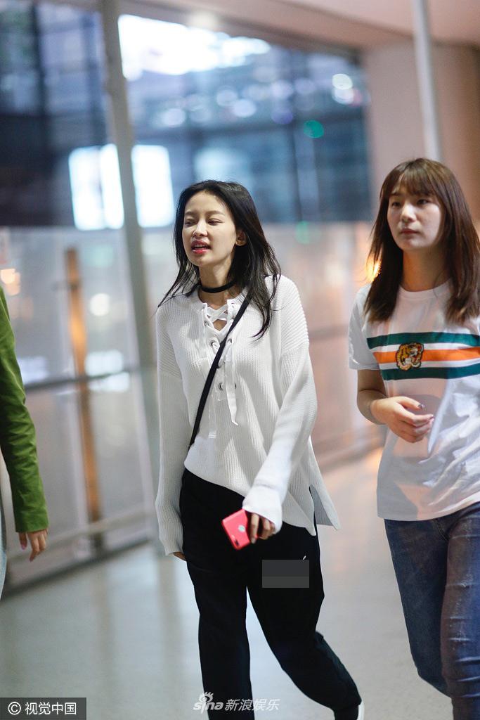 4月16日,孙怡与助理抵达上海机场。近日被爆出怀孕传闻的孙怡一身休闲黑白配,小腹平坦,边走边看手机,一脸温柔。视觉中国/图