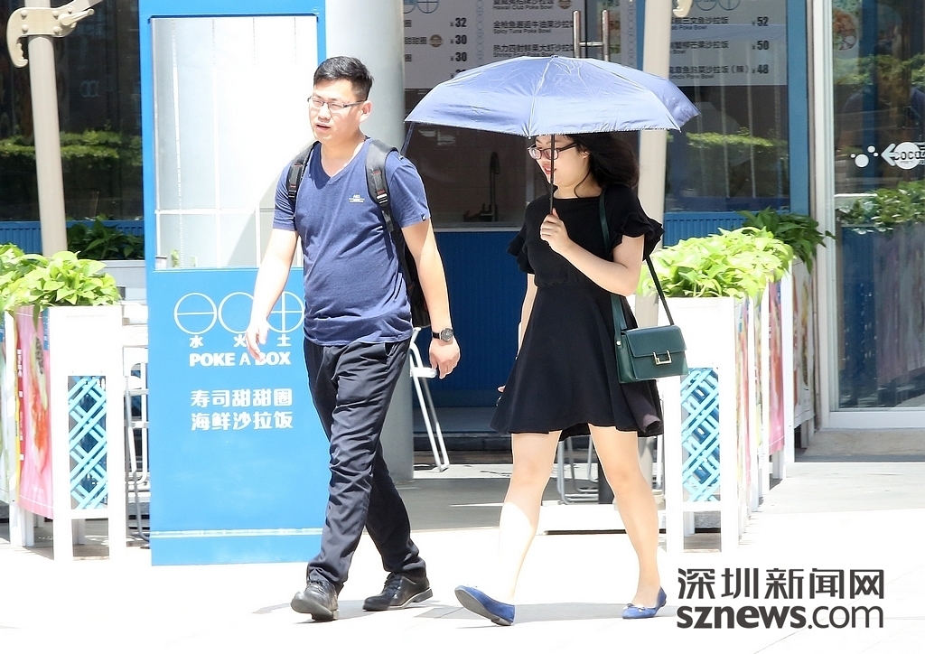 面对高温的“突袭”,不少市民撑起了遮阳伞蔽日。