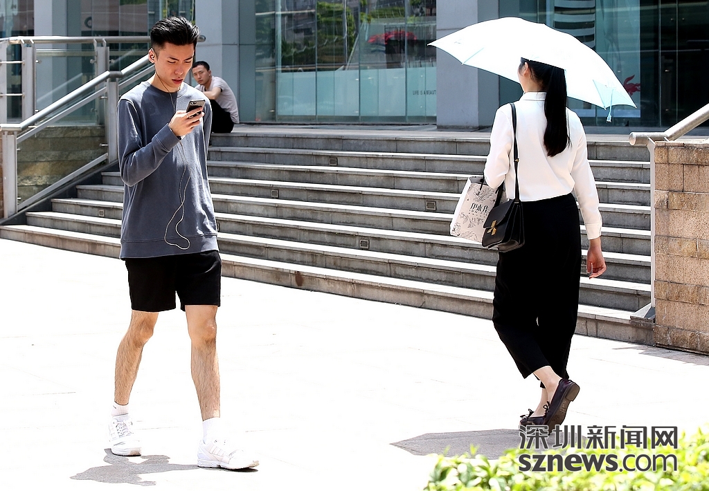 街头不少男生也换上短裤清凉出行。