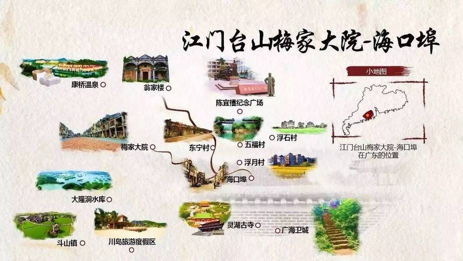台山梅家大院-海口埠及周边华侨文化浓厚,以古村古镇为代表的人文类旅游资源最为突出。第一天让你从人文建筑中领略百年古埠“出洋第一港”的魅力。第二天是完全不同的旅程,是享受阳光与海滩的海岛风情游。