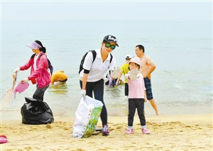 深圳美好的城市环境离不开市民的参与。图为义工们在海滩捡拾垃圾。 深圳特区报记者 丁庆林 通讯员 崔嵩 摄