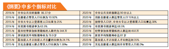 不同于一般性文件对文明素养的定性要求,《纲要》提出了21个量化指标和数据,比如注册志愿者人数达到常住人口15%以上,市民图书阅读率达68.5%,居民平均预期寿命达81岁等,力求对现代文明市民进行更加精准的画像,成为《纲要》的一个创新亮点。