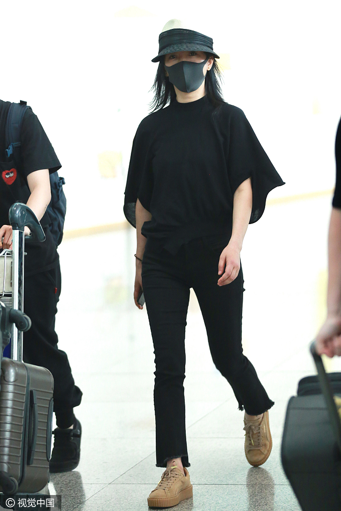 周迅口罩遮面懒理偷拍 全黑造型简洁大方