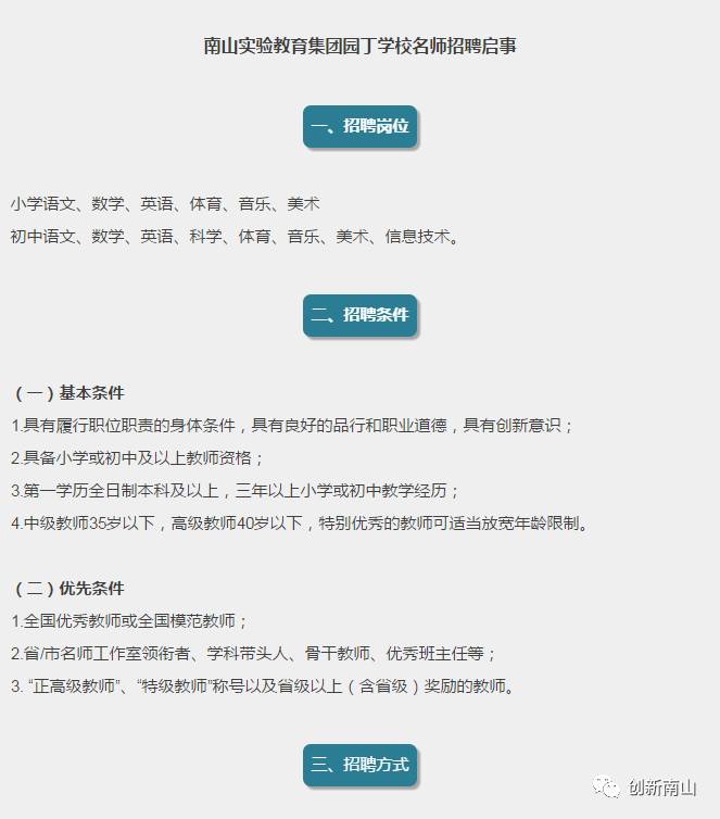 目前学校在已储备省市级学科带头人多名的基础上,向全国发出招募令: