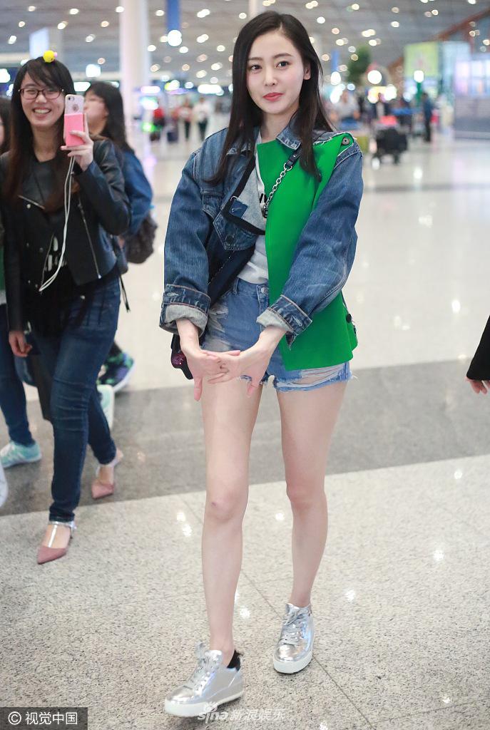 4月18日,张天爱离京现身首都机场,穿短裤露美腿,边走还边做伸展操。视觉中国/图