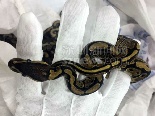 据了解,“球蟒”原产于非洲,是一种小型无毒蟒蛇,以小型哺乳动物(如小老鼠)为食,天性温顺胆怯,目前被一些爱好者作为“观赏宠物”饲养。根据初步鉴定,本次皇岗海关查获的“球蟒”为球蟒幼体。