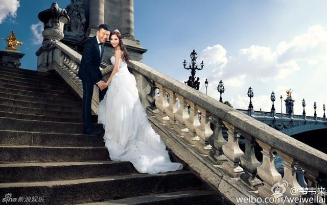 二人在巴黎的街头和风景旁边拍摄了婚纱照。