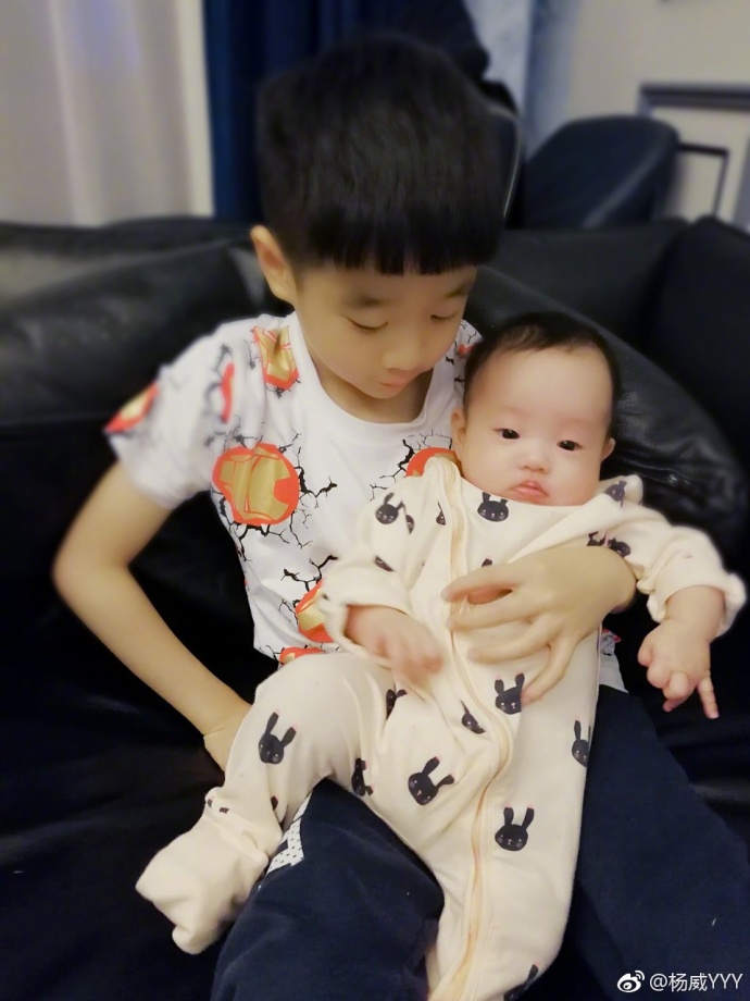 4月19日,杨威在微博晒出杨阳洋带两个弟弟的照片,杨阳洋哥哥力十足,两个弟弟笑容超可爱。