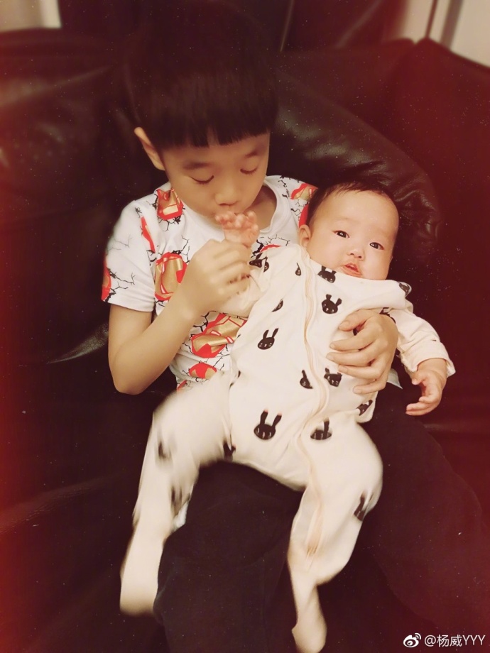 4月19日,杨威在微博晒出杨阳洋带两个弟弟的照片,杨阳洋哥哥力十足,两个弟弟笑容超可爱。