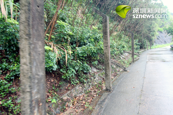 记者跟随区人大代表视察过程中发现,登山环道沿线原有的二线铁丝网已经损毁拆除殆尽,留有不少残存水泥桩柱,这些水泥桩柱高约2.5米,以3米的间隔分布在该段二线巡逻路的内侧,目前剩约60余个,而这些损毁倾倒或半倾在路边的桩柱,存有一定安全隐患。