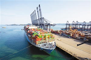 4月15日,载量达20170标箱的“商船三井成就”号首航盐田。这是全球目前投入使用的最大集装箱船,也是首艘投入运营的超2万标箱集装箱船。该船长400米、宽58.8米。记者了解到,“商船三井成就”由THE联盟(THE Alliance)投入运营,此次在盐田国际共装载3733个标箱。