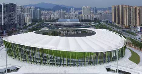 北有鸟巢,南有春茧,其中的“春茧”就是2011年第26届世界大学生夏季运动会的主会场——深圳湾体育中心,寓意“春茧”的独特设计通过银白色的巨型屋面网格结构对“一场两馆”及商业设施进行了建筑空间的一体化紧凑设计,对赛前和赛后的综合利用十分有利。