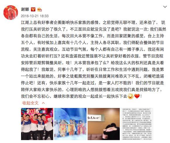 谢娜还曾在微博中表明:“我们虽然各自都有自己的生活,每次回大本营不像工作,而是回家团聚的感觉。”