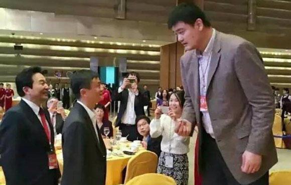 马云的这张简直分分钟被“秒”啊,姚明这背弯的也是够辛苦的~