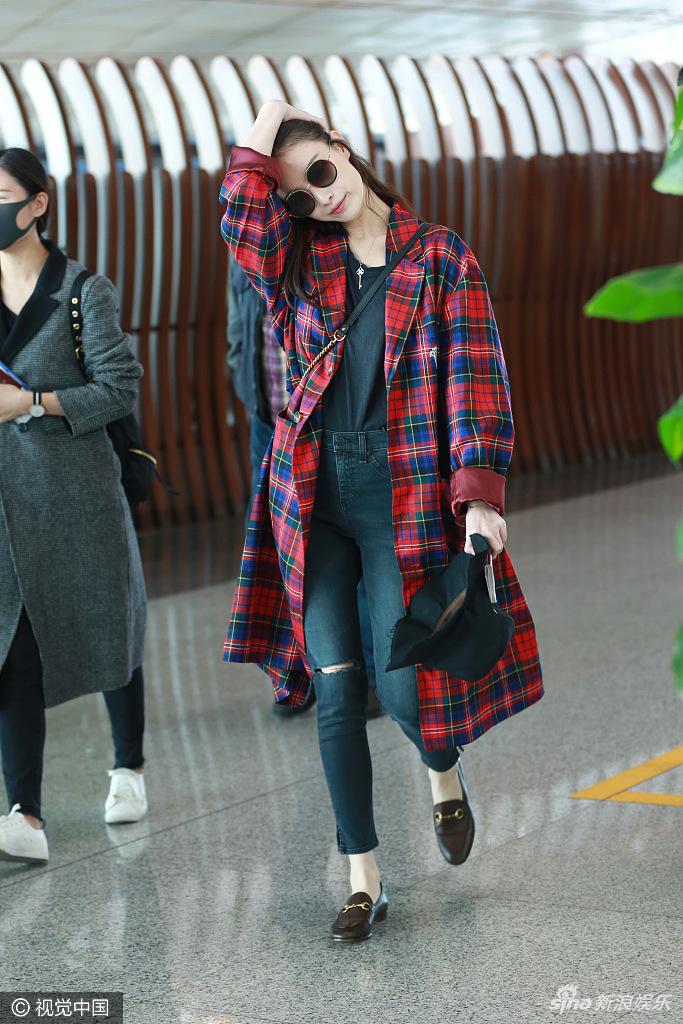 4月20日,倪妮一身帅气装扮现身北京机场,她身穿格子大衣搭配高腰裤,轻松打造2米大长腿,气场十足。倪妮一路对着镜头率性甩发,还噘嘴、挥手凹造型并展露灿烂笑容,看起来心情是相当的不错!