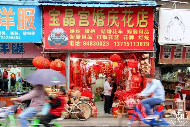 婚庆用品店主要集中在圩肚街上,可能因为紧邻“大新街”,附近居民给我们指路时,说是在“大街上”。相比西式的白婚纱黑西装,传统婚庆店里的东西似乎更有喜庆感。