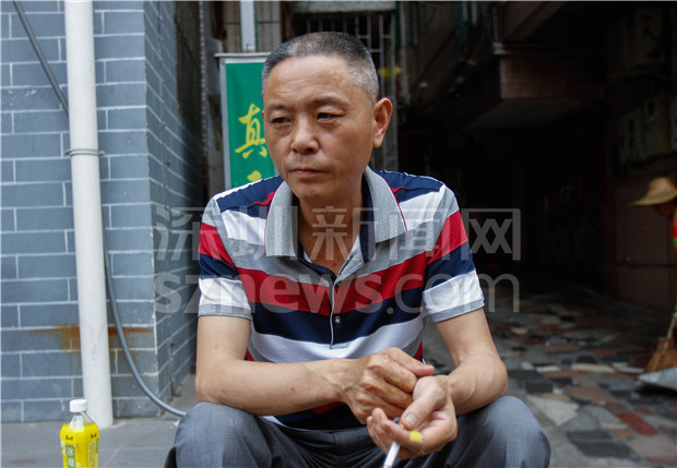 49岁的刘坤华(来自四川,男),1995年到深圳就租住在南头古城里。我们看到他的时候,他正在新安烟馆对面蹲着闲看行人,距离他摆摊的时间(下午5点才可以摆摊)尚早,刘坤华便与我们聊了起来。