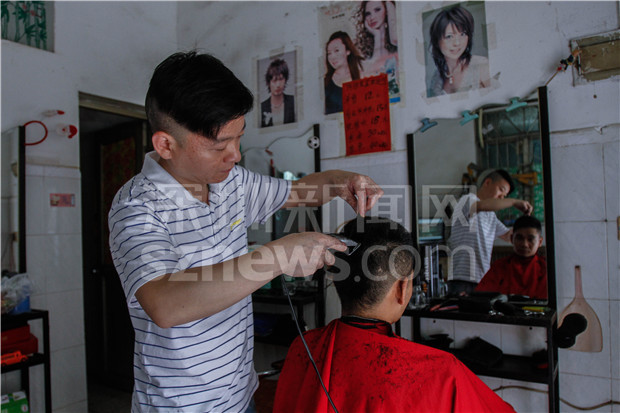 因为人手不够,现在何胜武的发廊只做男顾客的生意,有很多是老顾客,每个月的毛收入有9000多元,加上老婆也有上班,收入还是够用。有意思的是,不少老顾客即使搬离了南头古城,也会抽时间回来他的店理头发。