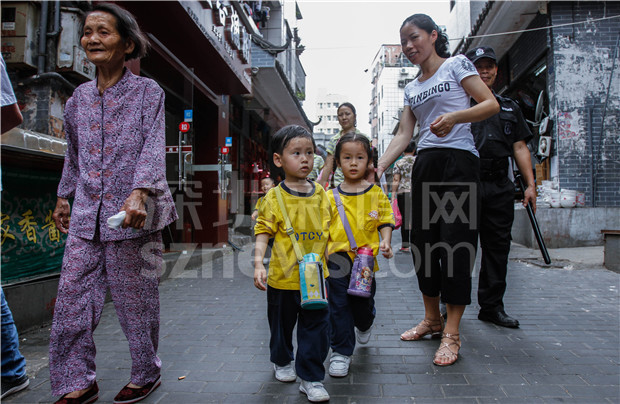 在报德堂,一群穿着黄色T恤的幼儿园小朋友排着队叽叽喳喳地出来了,像欢乐的小鸟。站在报德堂门口的幼儿园老师说,今天带幼儿园小朋友春游。记者问她觉得南头古城怎么样,“这里很好啊,街道干净”。