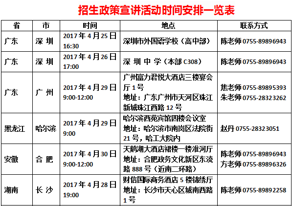 为了使考生、家长和学校更进一步了解深圳北理莫斯科大学,学校近期将分赴以上省(直辖市)举行招生政策宣讲会。宣讲活动将同步更新,敬请考生、家长们关注学校招生信息。