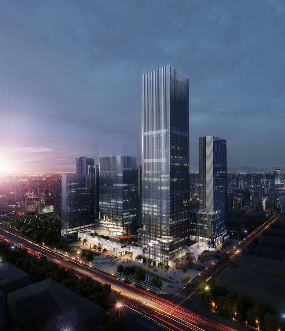 基于周边城市环境塑造天际线,延续笋岗清水河片区超高层建筑群形成有韵律的变化,最终与周边山势融为一体。