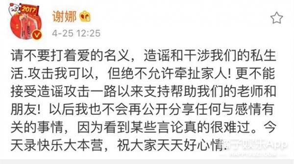 今天谢娜终于对这件事做出了回应,称不想让别人再造谣伤害自己的家人和朋友,并且还表示自己不会再分享和感情有关的事情了。