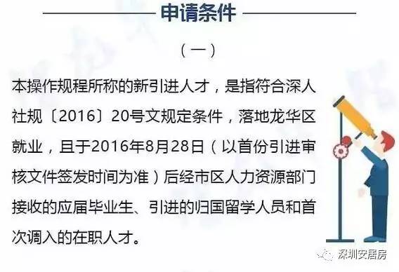 (一)本操作规程所称的新引进人才,是指符合深人社规〔2016〕20号文规定条件,落地龙华区就业,且于2016年8月28日(以首份引进审核文件签发时间为准)后经市区人力资源部门接收的应届毕业生、引进的归国留学人员和首次调入的在职人才。