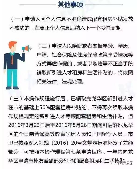 深圳市龙华区新引进人才配套租房和生活补贴操作规程