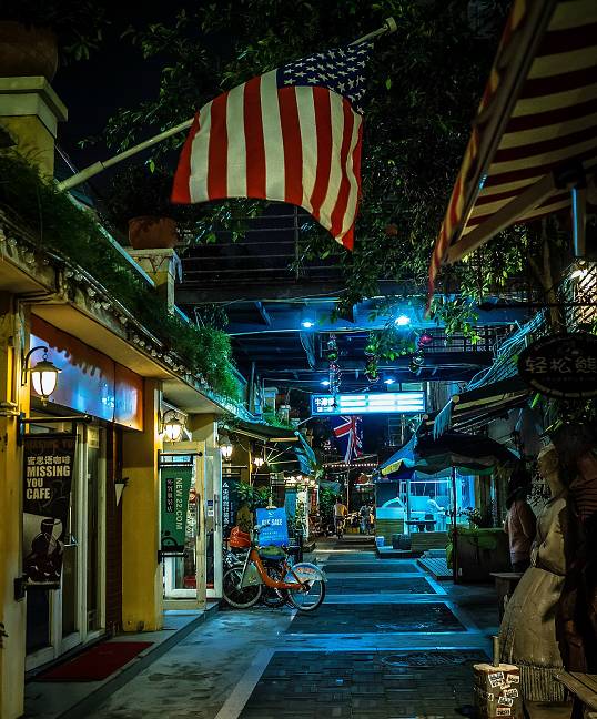 是一条打着异国风情旗号的伪文艺街巷,当中有文青口味的外国餐厅,烘培屋,手工艺品店,水族店等等。