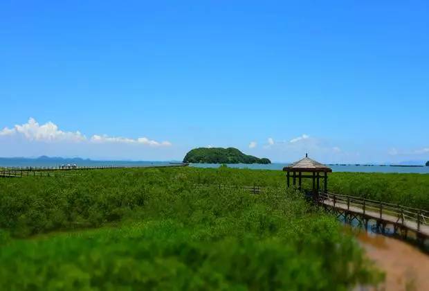 在阳江海陵岛的国家红树林湿地公园,全场一千多米的海上观光栈道就能让你和醉人的蓝色亲密接触,是观赏闸坡涨潮的好地方。这里以亚热带红树林湿地为风景特征,在谷雨时节更加清幽惹人醉。
