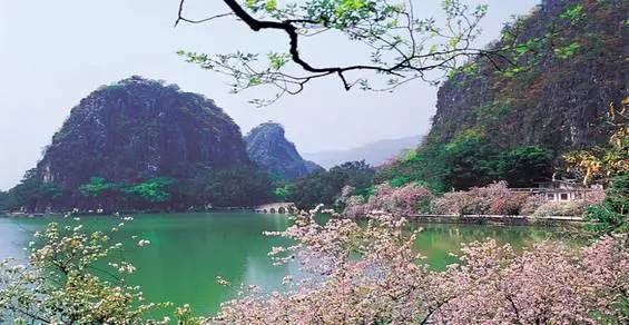 肇庆七星岩享有“岭南第一奇观”、“珠江三角洲后花园”、“人间仙境”等美誉。春天的星湖湖畔,长畔的宫粉紫荆刚好满树繁花,杜鹃花也争妍斗艳地开放。