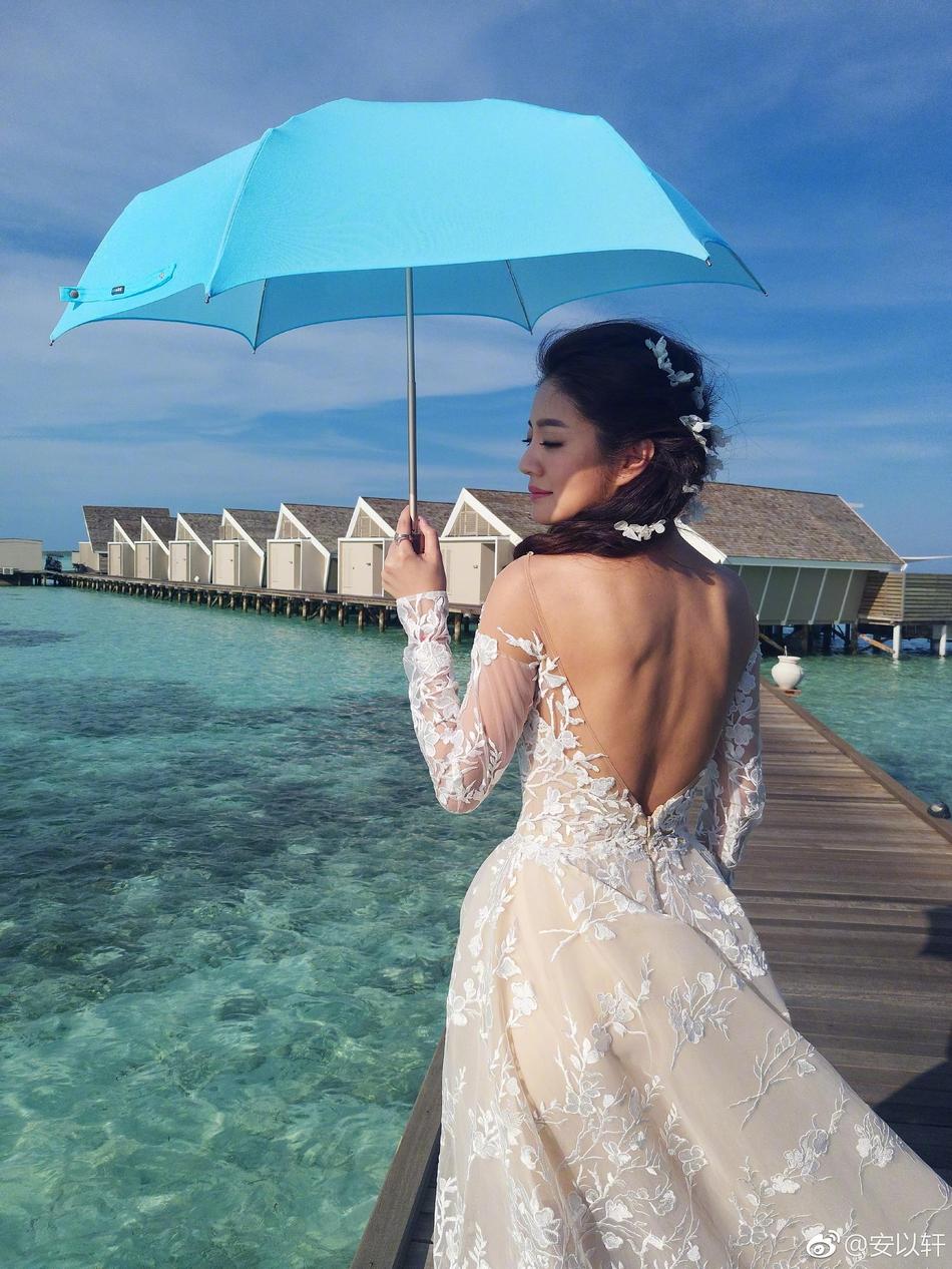 安以轩晒婚纱花絮照 六月新娘性感露背(图)