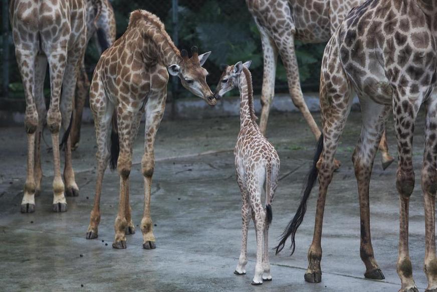 当天,深圳动物园还有5只小长颈鹿一同亮相。
