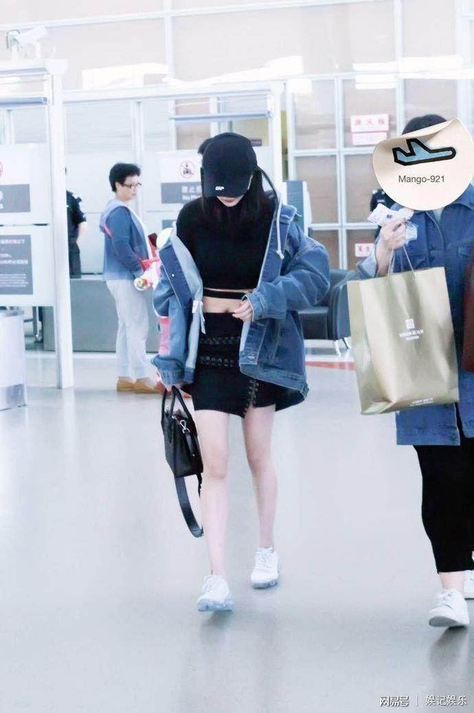 杨幂穿“露脐装”飞深圳,呆萌可爱,露剖腹产疤痕?