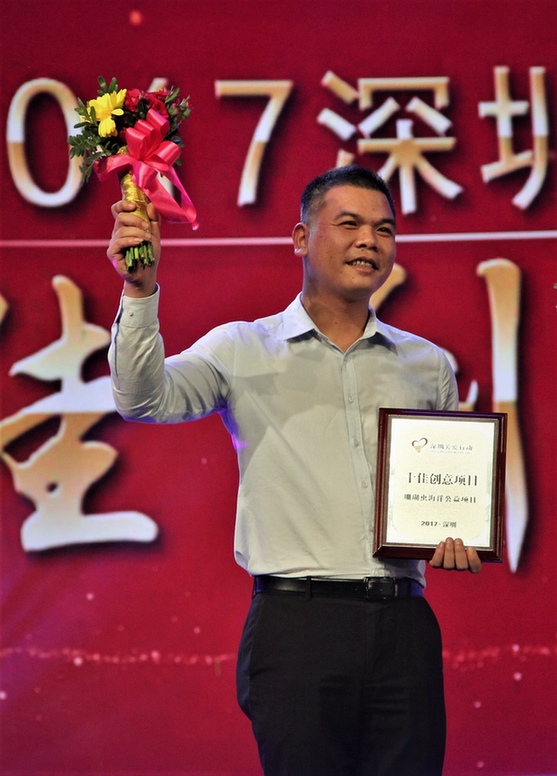 “深圳有绵延200多公里的海岸线,在深圳的海底,有无数珊瑚虫繁殖分泌而形成的珊瑚礁。有一位深圳人,眼看着海下的珊瑚礁越来越少,再也坐不住了。”颁奖仪式上,主持人说到,这位年轻人就是珊瑚虫海洋公益负责人杨旭聪。作为土生土长的深圳人,杨旭聪从小在海边长大,对海洋有着天生的热爱,为保护珊瑚,他组建了一支海洋环保义工队伍,开展珊瑚种植、保育及科普推广工作。