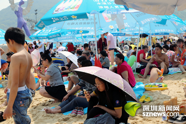 “今天天气很给力,所以一大早就带小朋友来海边玩玩。”来自上海的肖女士是第一次来深圳,肖女士说,一直听闻大梅沙游客量太多,所以早早就通过公众号预约了入园号,但过来了才发现,原来“免费预约入园”仅在小长假最后一天试行。谈起此次大梅沙海滨之旅,肖女士表示,公园的自然环境、人文景观都很美,配套设施也很完备,值得一游。来自惠州的黄先生则是带着全家人来海边度假,原本计划来大梅沙游泳,但到了公园内,才发现尽管气温很高,但海水温度却并不适合游泳,最后选择待在沙滩上,玩玩沙、赏赏景。