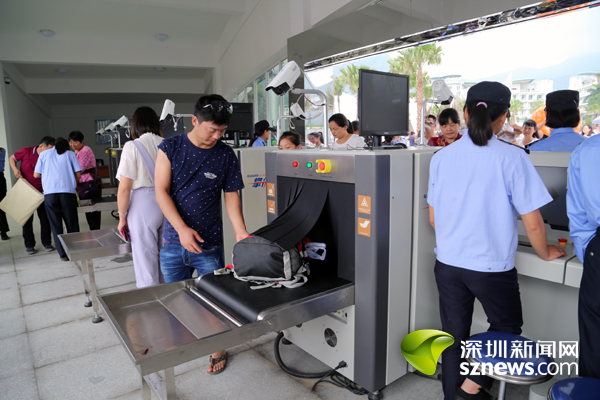 基于安全考虑,大梅沙海滨公园昨日起实行“逢包必检”管理模式,公园入口的19台X光检测仪正式“上岗”。“今天查出了一些水果刀、玻璃瓶装的啤酒等,这些是不允许带进公园的。”大梅沙海滨公园管理处现场值班人员表示,五一当天并未因“逢包必检”导致排长龙,游客也比较配合检查,整体秩序良好。记者在安检通道和无包通道看到,游客或自觉将行李放上传送带,接受X光安检仪的监测,或通过无包通道进入园区,或通过红外线智能闸机出园,整个过程显得井然有序,并没有出现游客长时间滞留出入口处,排队侯检或出园等现象。